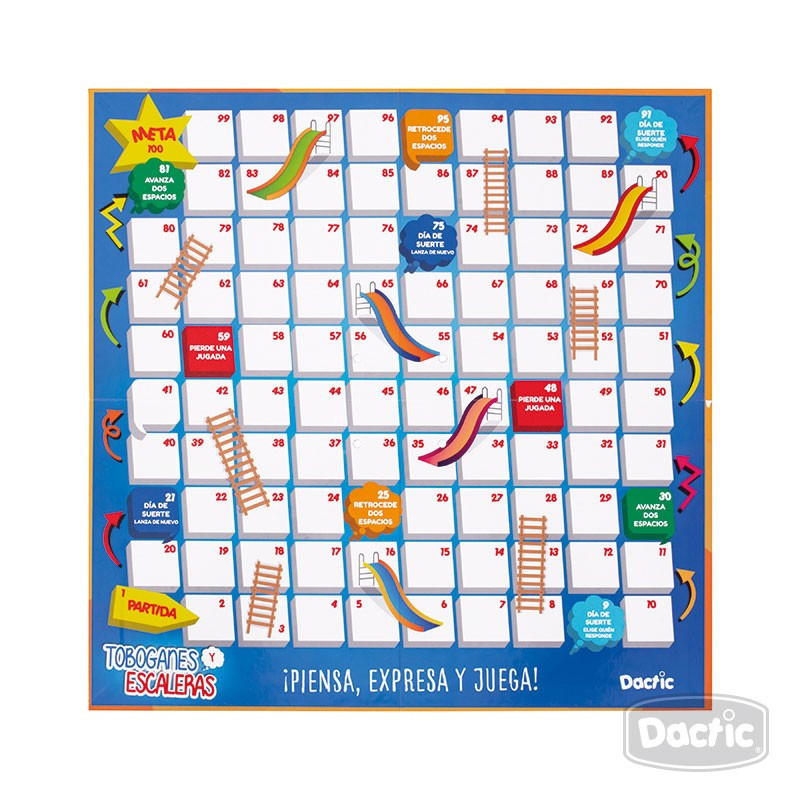 Juego de mesa escaleras y toboganes. Material didáctico diseñado para desarrollar habilidades matemáticas, resolución de problemas y pensamiento lógico matemático. entretenido juego de mesa de ascensos y descensos. Recomendado a partir de los 4 años.