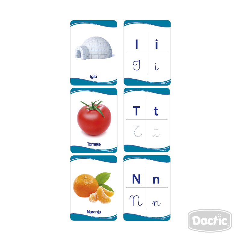 Nuestras prácticas láminas didácticas son ideales para el aprendizaje de las letras del abecedario en imprenta, manuscrita, mayúscula y minúscula. Además cada letra tiene asociada una imagen relacionada con cada letra. Contiene 60 piezas de 12 x 17 cm aproximadamente. Recomendado para  niños desde los 4 años..