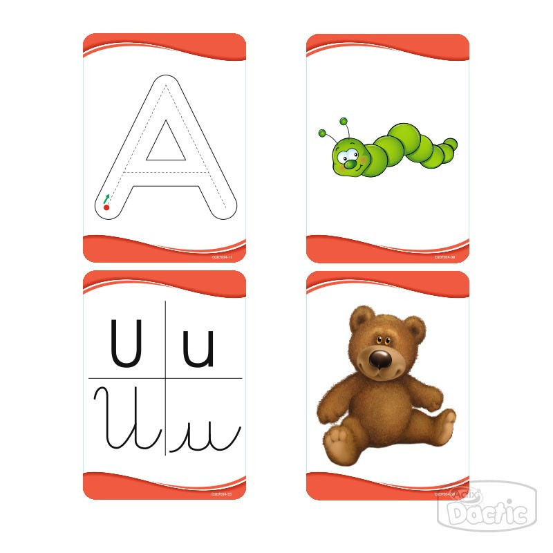 Nuestras prácticas tarjetas didácticas termolaminadas permiten desarrollar la conciencia fonológica de las letras vocales mediante la identificación del sonido inicial y la asociación de imágenes. En mayúsculas, minúsculas y manuscritas. Podrás utilizarlas una y otra vez usando un marcador de pizarra. Contiene 56 piezas de 12 x 17 cm aproximadamente. Recomendado para  niños desde los 4 años.