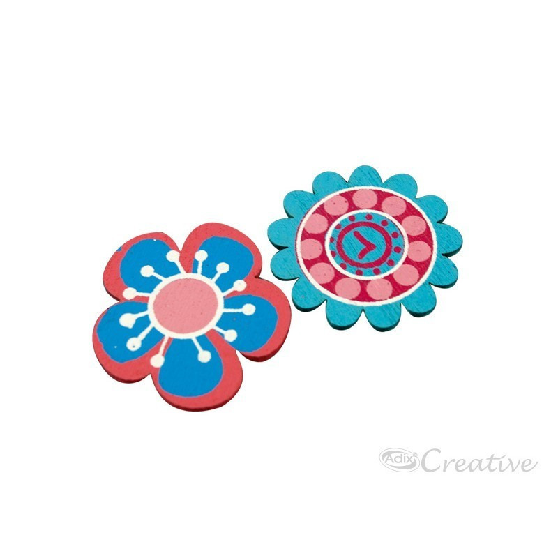 Flores de madera pintada 10 unidades. Ideales para trabajos manuales y decoración.Producto no Apto para menores de 3 años.
