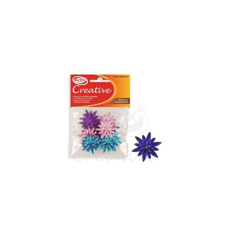 Set de flores plásticas. Ideales para trabajos manuales y decoración. Contiene 12 unidades de hasta 3,5 x 3,5 cm aproximadamente. Producto no Apto para menores de 3 años.