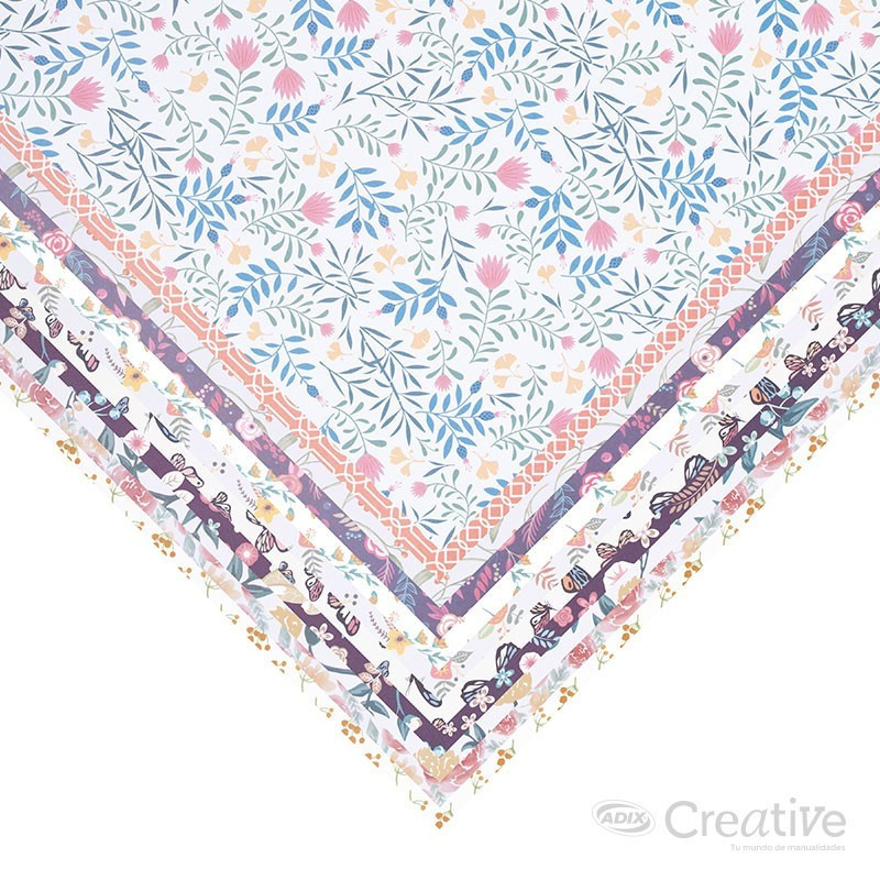 Set cartulinas con diseños de jardín para darle color y estilo a tus trabajos. Contiene 24 unidades con 12 diseños diferentes.