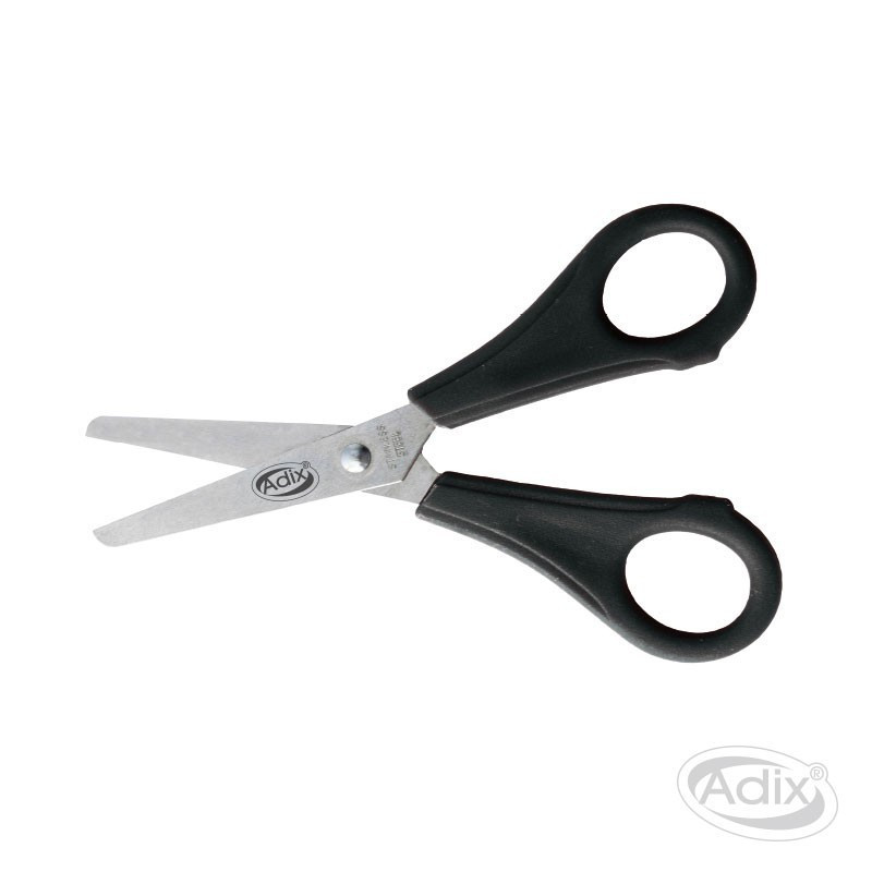 Tijera escolar punta roma color negro. Ideal para trabajos manuales y escolares. Mango confortable. Contiene una pieza de 13 cm aproximadamente. Producto no apto para niños menores de 3 años.