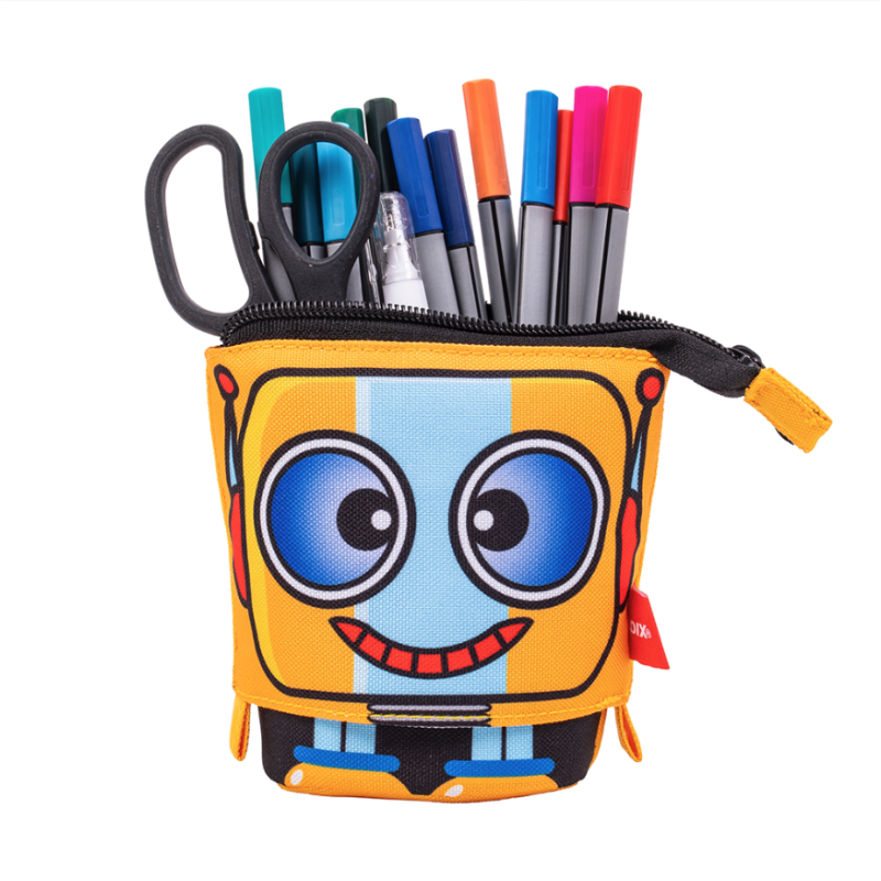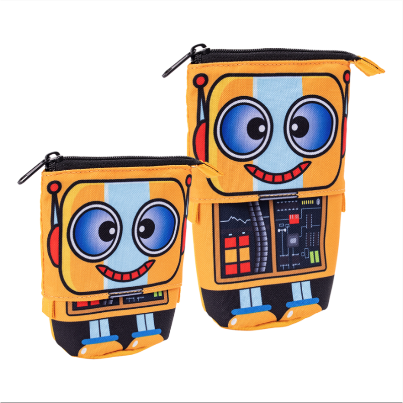 A clases con estilo con el Estuche Escolar Retráctil Robot.
