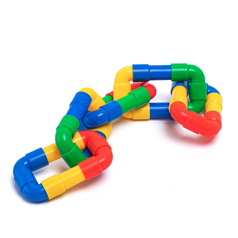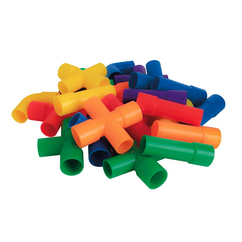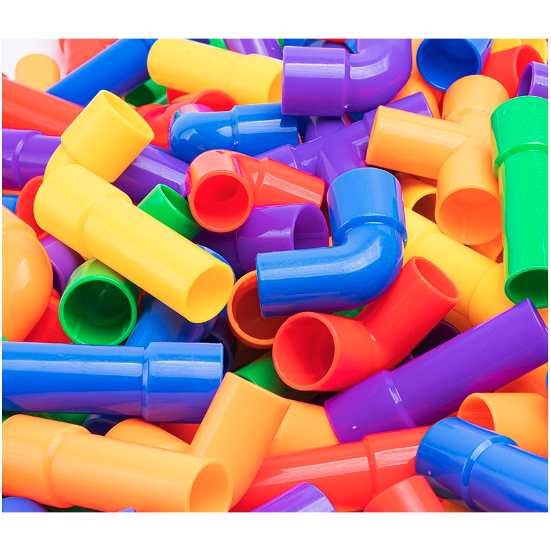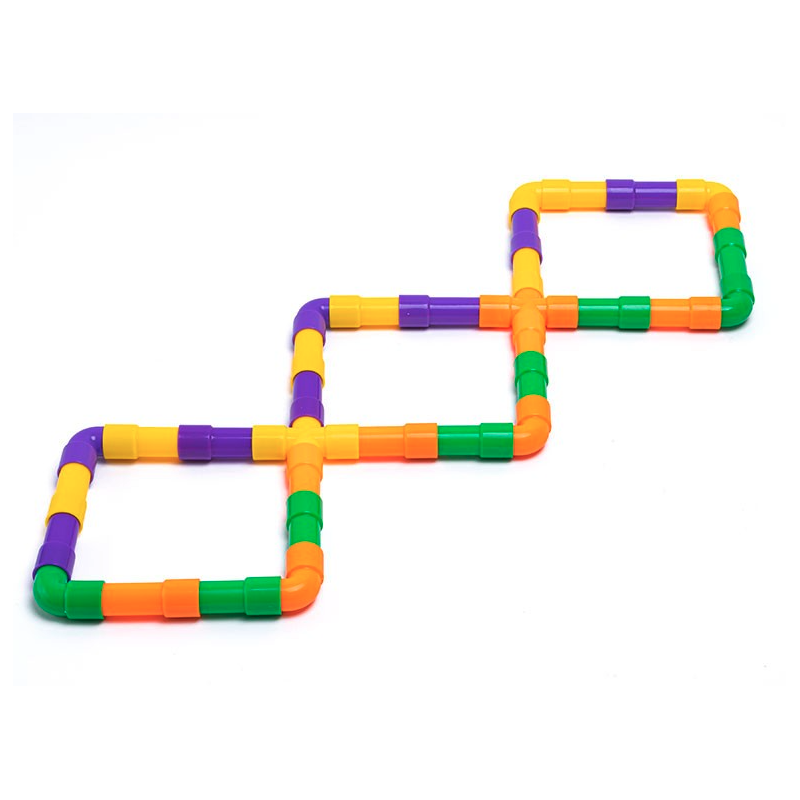 Diseña tus propios laberintos y divertidas estructuras con los tubos conectores de colores.