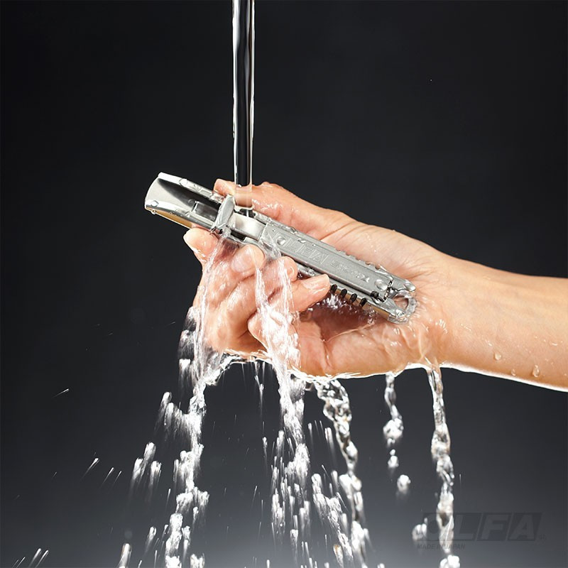 Cortador de seguridad de acero inoxidable con sistema auto-retráctil que oculta el filo al momento de finalizar el corte, aun si se mantiene el dedo sobre el deslizador. Su cuerpo de acero inoxidable lo hace indicado para uso en la industria alimentaria por su fácil sanitización y detección. Certificado por la NSF (National Sanitization Foundation). No diseñado para el uso directo sobre alimentos. No requiere herramientas para cambiar la hoja. Cuenta con un aro en la parte posterior para colocar correa o colgar de la pared. Repuesto SKB-2S.