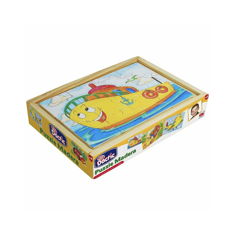Set de 4 rompecabezas de madera de medios de transporte. Permite que los niños resuelvan problemas y mejoren la coordinación motriz fina junto con la percepción visual, el razonamiento lógico y la concentración. Contiene 48 piezas de 4,8 x 4,3 cm aproximadamente, más la caja. Juguete recomendado para niños desde los 4 años.