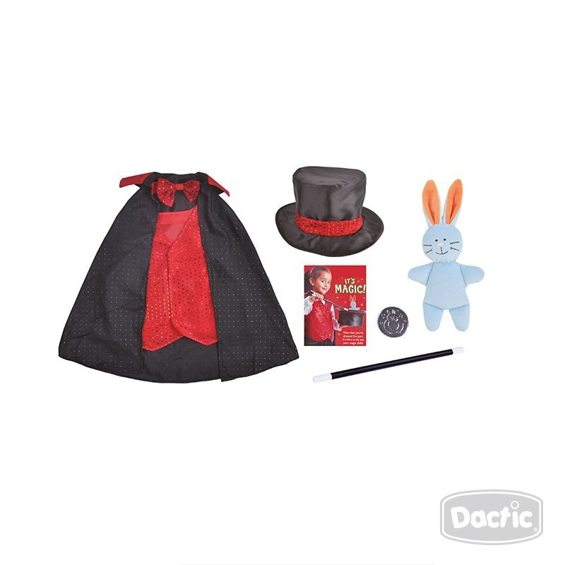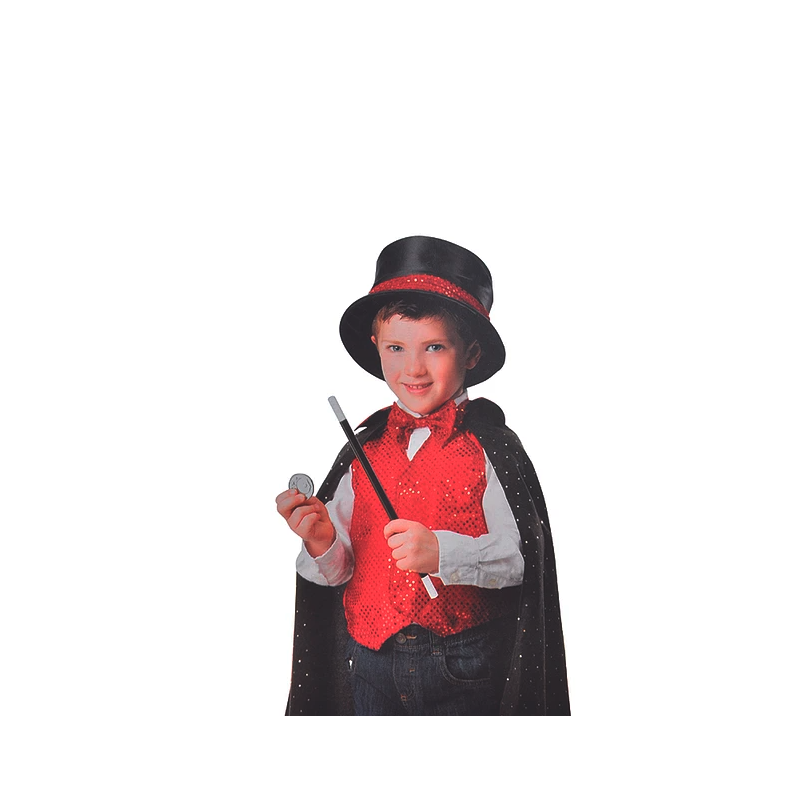 Disfraz de mago. Permite a los niños desarrollar la creatividad, imaginación y el lenguaje a través de la representación de diversos personajes. Además de expresar sus emociones logrando de esa forma superar sus miedos y timidez. Recomendado para niños a partir de los 3 años